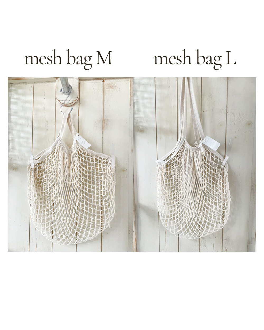 메쉬백 L 사이즈에요. 어깨끈길이가 더 긴편이에요.