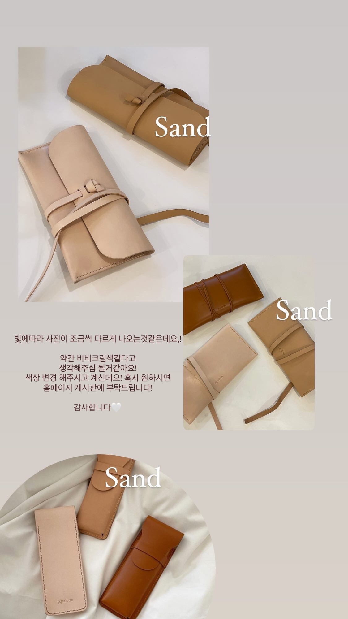 natural, sand 칼러로는 아래 사진을 참고해주시면 될 것 같습니다.